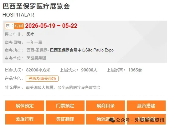 [展位预定、门票预定、展商目录、展台搭建、差旅行程、签证、翻译、物流运输、补贴申报]