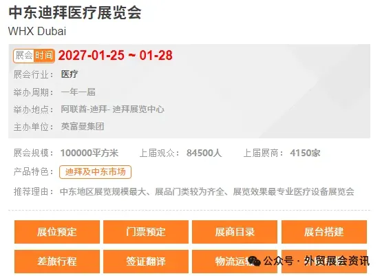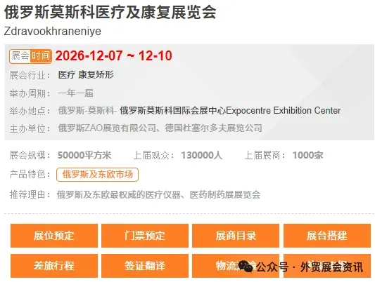 [展位预定、门票预定、展商目录、展台搭建、差旅行程、签证、翻译、物流运输、补贴申报]