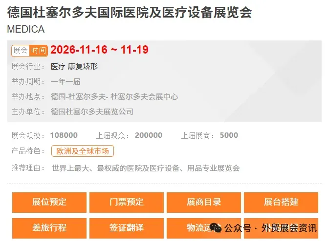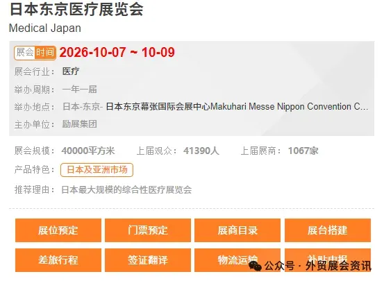 观众类型: 专业观众(医疗保健提供者、制药公司、医疗技术企业、政府机构、采购商等) EventsEye,2025 年 7 月