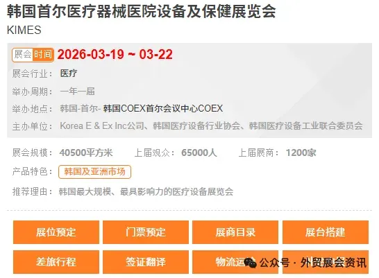 [展位预定、门票预定、展商目录、展台搭建、差旅行程、签证、翻译、物流运输、补贴申报]