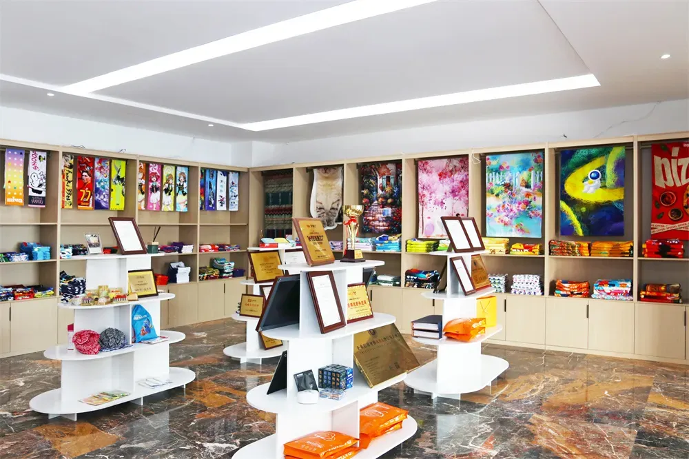 在本次展会现场,我司本次依旧是搭建了精美的展厅供大家参观,现场更是带有多种精美的数码印花定制产品供大家现场看实物,看品质。