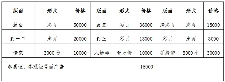 2.标准展位(3m×3m):国内企业12800.00RMB/个;境外企业1780.00USD/个。