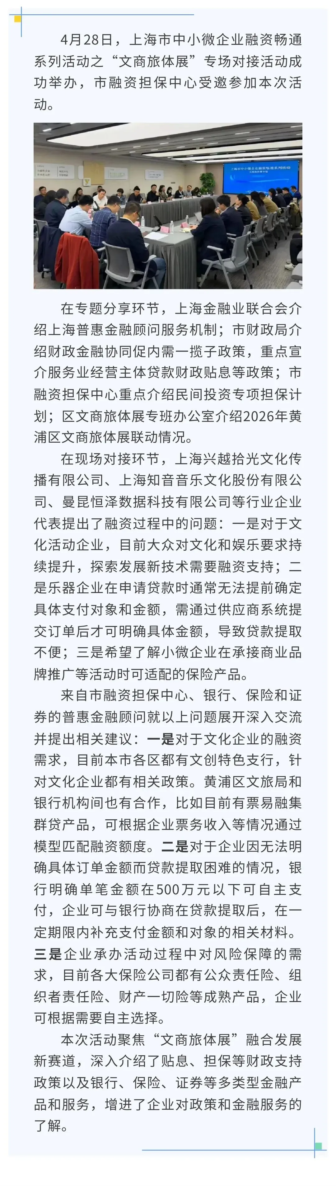 市融资担保中心参加上海市中小微企业融资畅通——“文商旅体展”专场对接活动