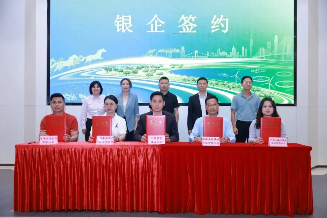 签约环节,中国银行珠海分行分别与珠海集元水产科技有限公司、珠海龙胜渔业科技有限公司、珠海金渔食品有限公司、广东大麟洋海洋生物有限公司签署授信协议,“真金白银”精准支持企业智能化升级、种苗繁育、深海养殖及水产品精深加工等关键环节,为珠海海洋经济注入强劲动能。