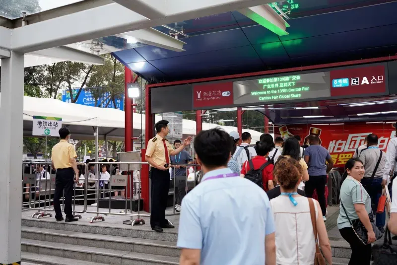 地铁四号线、八号线通过增加上线列车、备用车上线加开、空车定点投放等措施有效提升运力,通过展馆广播、增加标识指引、志愿者协助等方式加强现场指引,引导更多客商选择地铁十一号线出行;海珠有轨电车根据客流情况优化运营调度,进一步提升琶洲区域公共交通疏运能力。