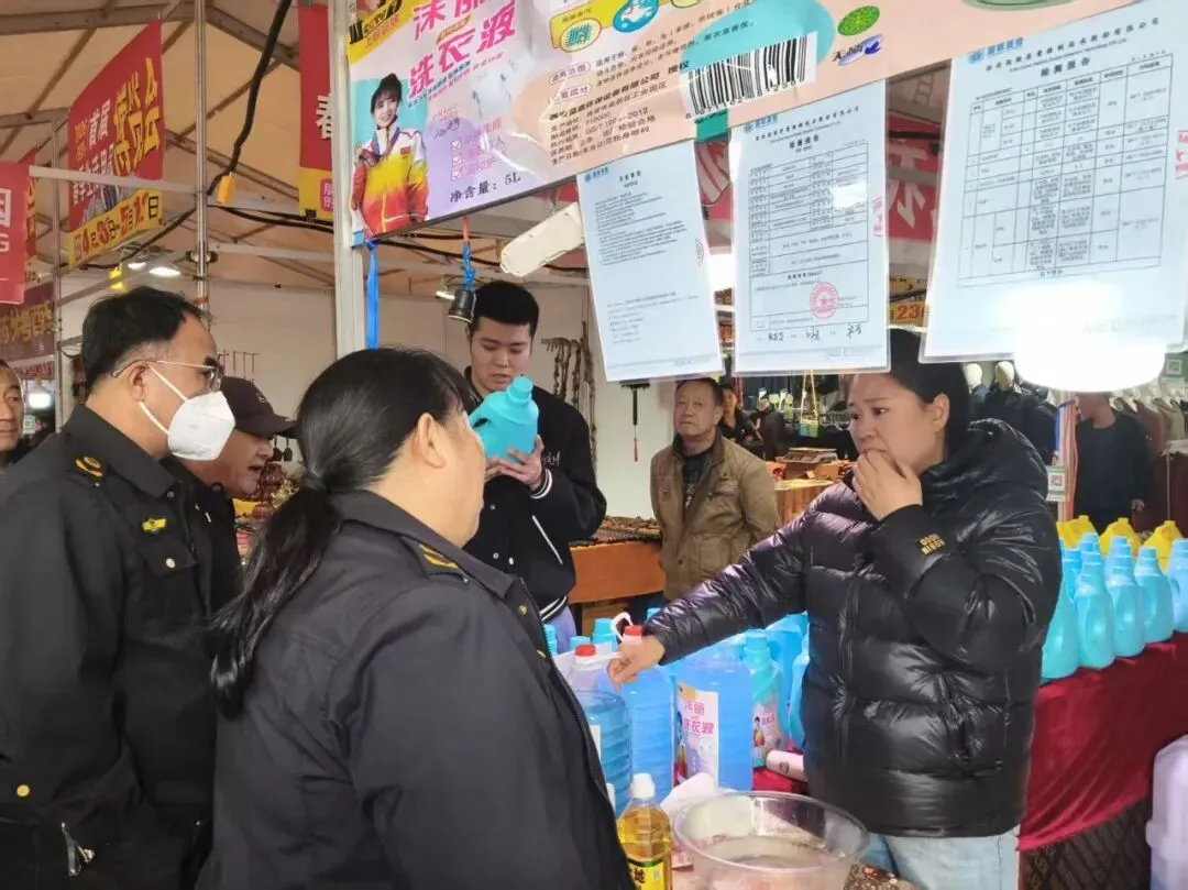 本次春季博览会展销品类丰富,涵盖食品农副产品、日用百货、服饰家居等各类民生商品,人流量大、经营业态集中,是市场监管的重点场景。检查过程中,执法人员严格核查商户营业执照、食品经营许可证等相关资质证件,查验从业人员健康证明,严厉整治无证经营、超范围经营、资质过期等违规行为,严把市场准入关口。针对群众高度关注的食品安全问题,重点排查散装食品、预包装食品、农副产品等热销品类,严格检查食品进货查验、索证索票、进货台账等制度落实情况,严查过期变质、三无产品、来源不明及假冒伪劣食品,规范食品储存、摆放经营卫生条件,从源头守住食品安全底线。