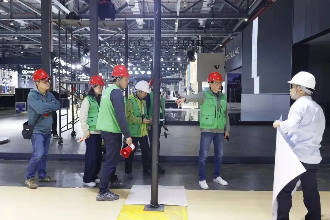 4月30日上午,安全总监秦建国带队,开展五一展前安全大检查。检查组深入展馆一线,对特装展位结构牢固性、高空承重吊点配重、展会现场接电规范、展位灭火器配置、消防栓遮挡占用等情况进行全面细致的排查,确保每一个环节都经得起检验,每一处细节都不留隐患。