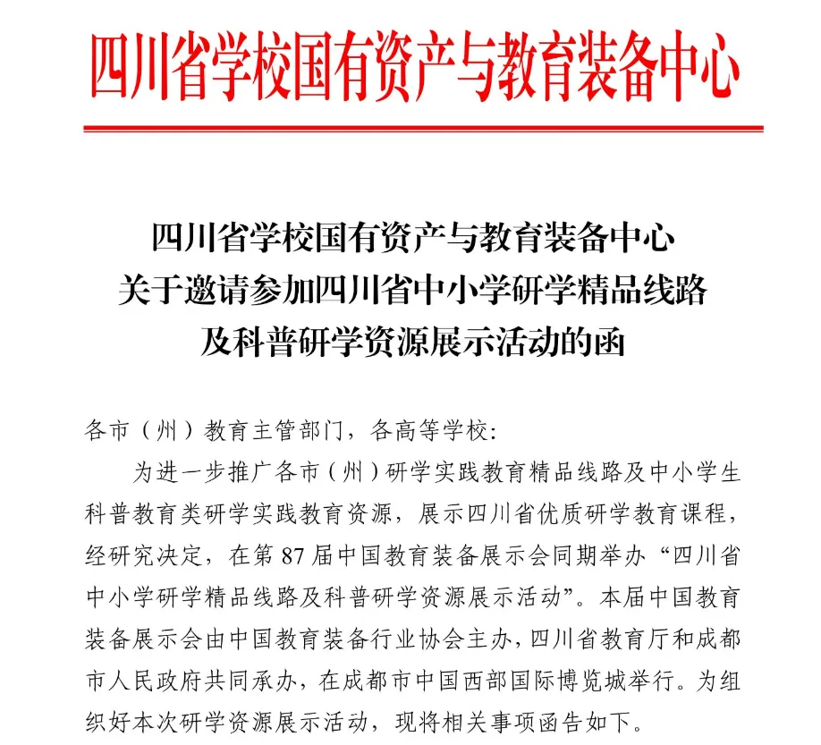 本次活动由四川省学校国有资产与教育装备中心主办,汇聚全省116条认证研学精品线路、66所高校的977个优质科普研学资源,是省内研学与科普教育领域的重要交流平台。吉利学院此次参展的汽车主题研学项目,依托高校专业师资与课程研发能力打造,成功纳入四川省中小学科普教育研学实践官方资源名录,获得官方认证支持。