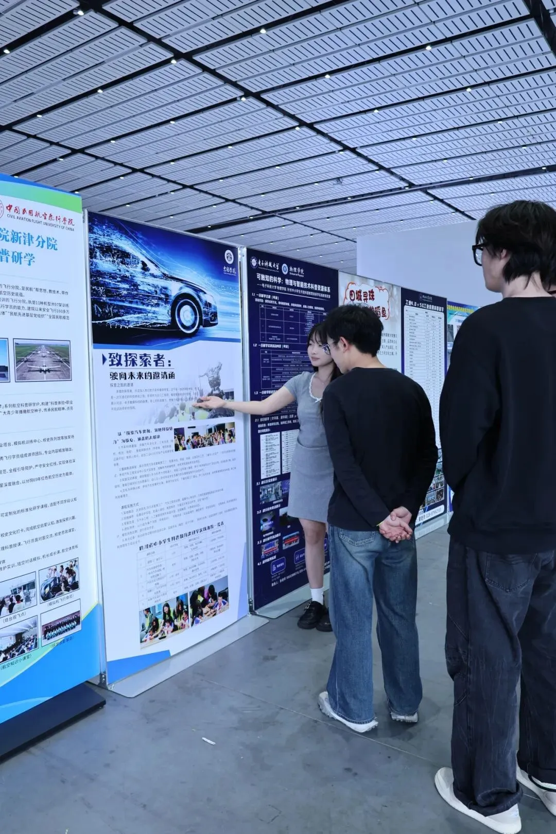 展会现场,吉利学院展示区域围绕“致探索者:驶向未来的邀请函”主题,系统呈现研学线路设计、汽车科技核心课程模块、分学段适配教学方案等核心内容。工作人员向参展教育同仁、观展嘉宾详细讲解课程研发思路、实践流程亮点,重点展示科普知识与实践体验相结合的研学模式,直观呈现高校服务中小学科普教育的实践成果,吸引了不少参展人员驻足交流、咨询了解。