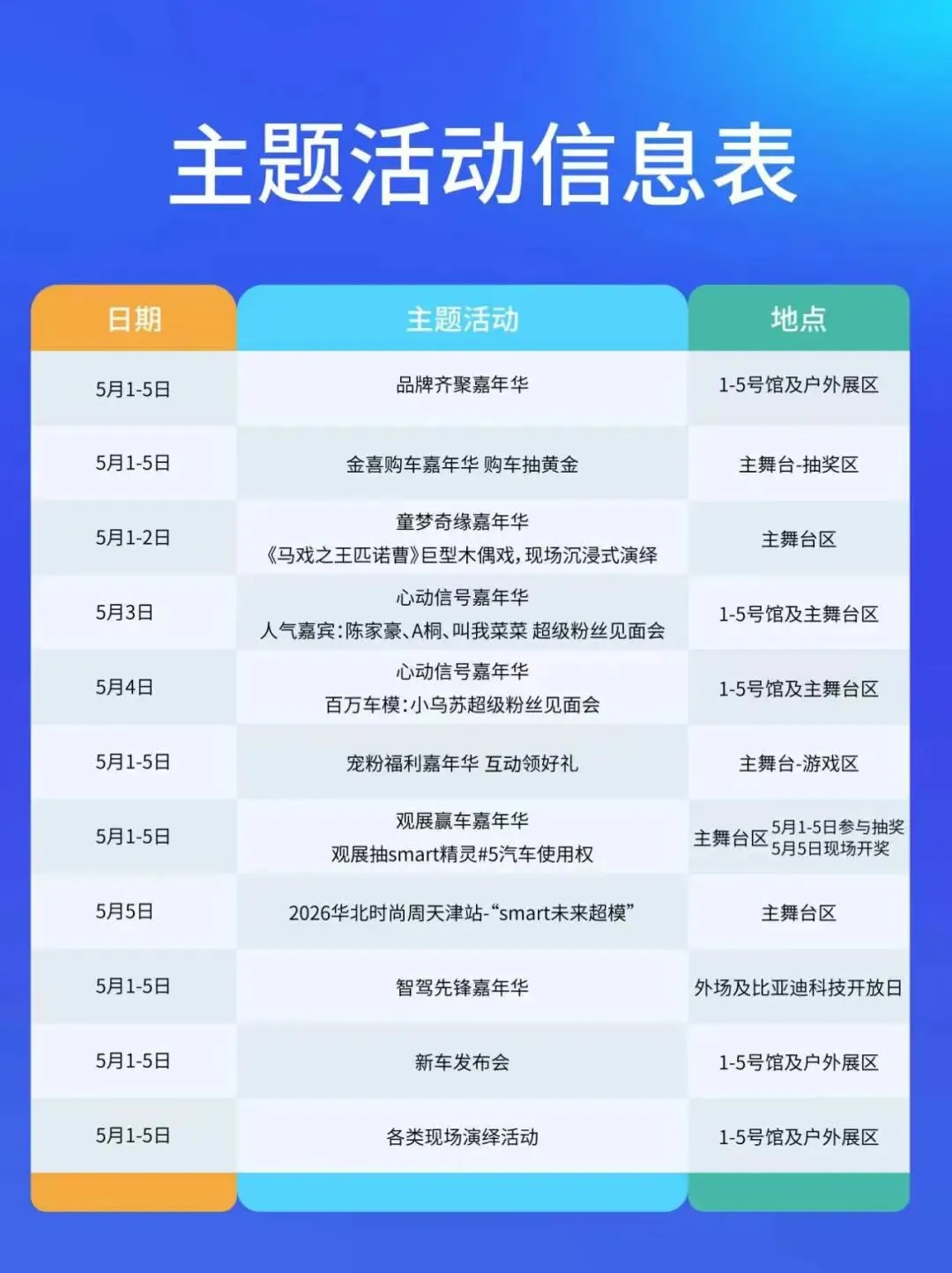 2026天津国际汽车交易会(天津车展)将于5月1-5日在天津梅江会展中心盛大举办。以“津彩五一,智慧同行”为主题。