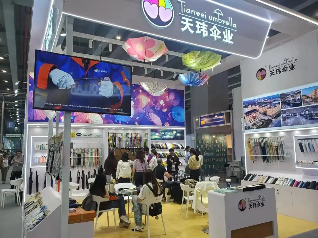 浙江天玮雨具有限公司自1993年创立以来,始终以客户需求为导向,以“匠心造伞,为世界撑起安心与美好”为使命,始终专注伞具领域,目前取得多项省级、国家级认证,并同时拥有美国、日本、欧洲、中国等国内国际专利数百项,并拥有ISO14001、ISO9001、ISO45001、BSCI、SEDEX、TARGET等多种国际验厂资质。本届广交会,公司携带“轻量化雨伞”参展,不仅轻巧,还具有降温高遮热的功效,同时可以记忆秒收伞。第二期展会期间,公司共接待来自日本、韩国、印尼、意大利、西班牙、德国、加拿大、俄罗斯、塞尔维亚、中国台湾地区等15个国家和地区的采购商200多位,达成初步意向订单220万美元,现场成交订单23万美元。