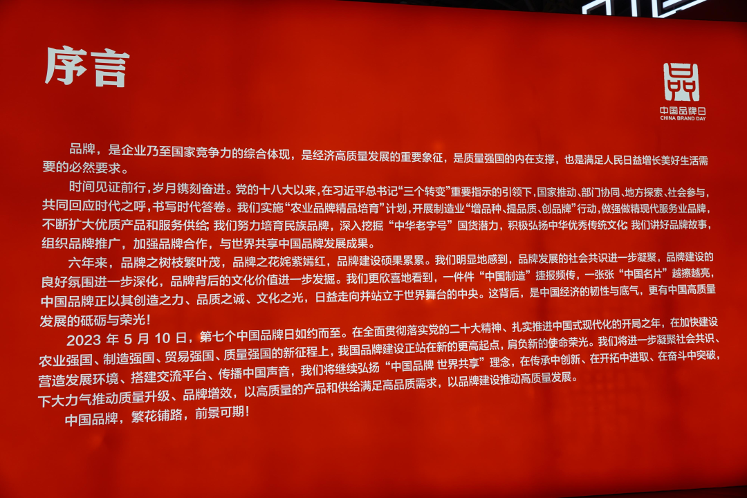今年是第七届中国品牌日活动,活动主题为“中国品牌,世界共享;品牌新力量,品质新生活”,品牌日活动于2023年5月10日至14日在上海举行。