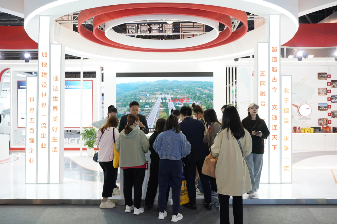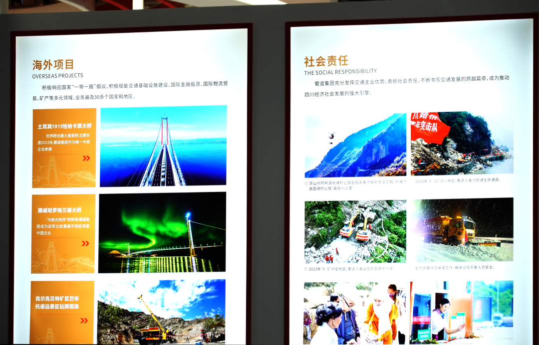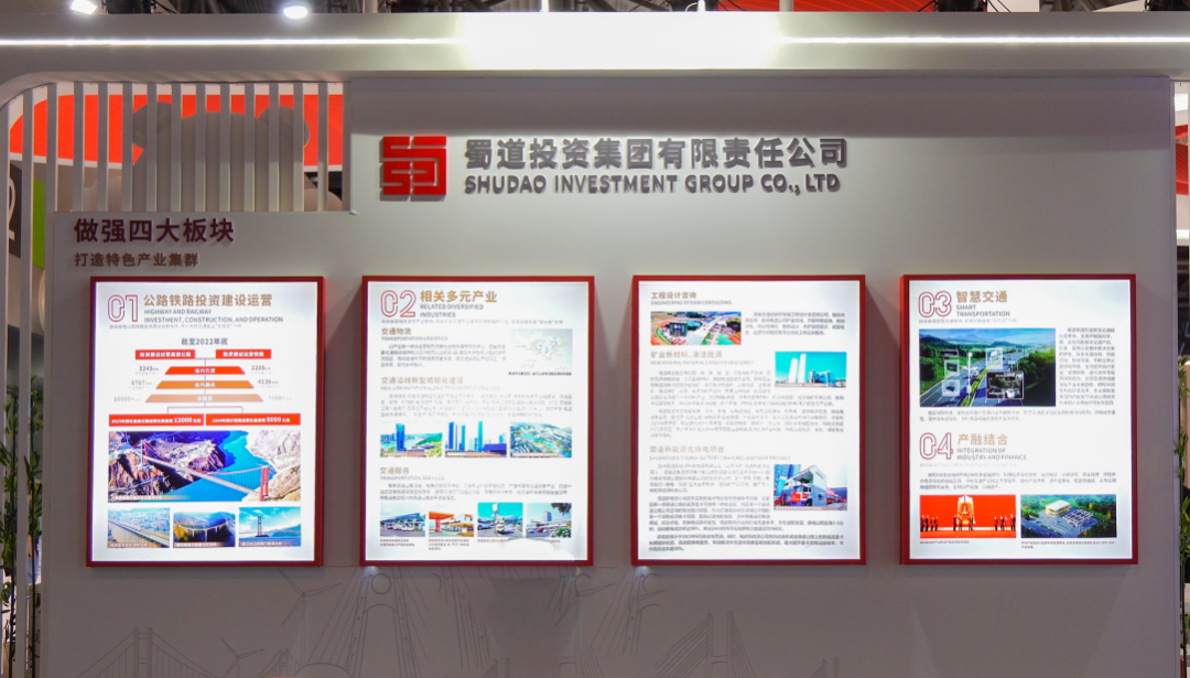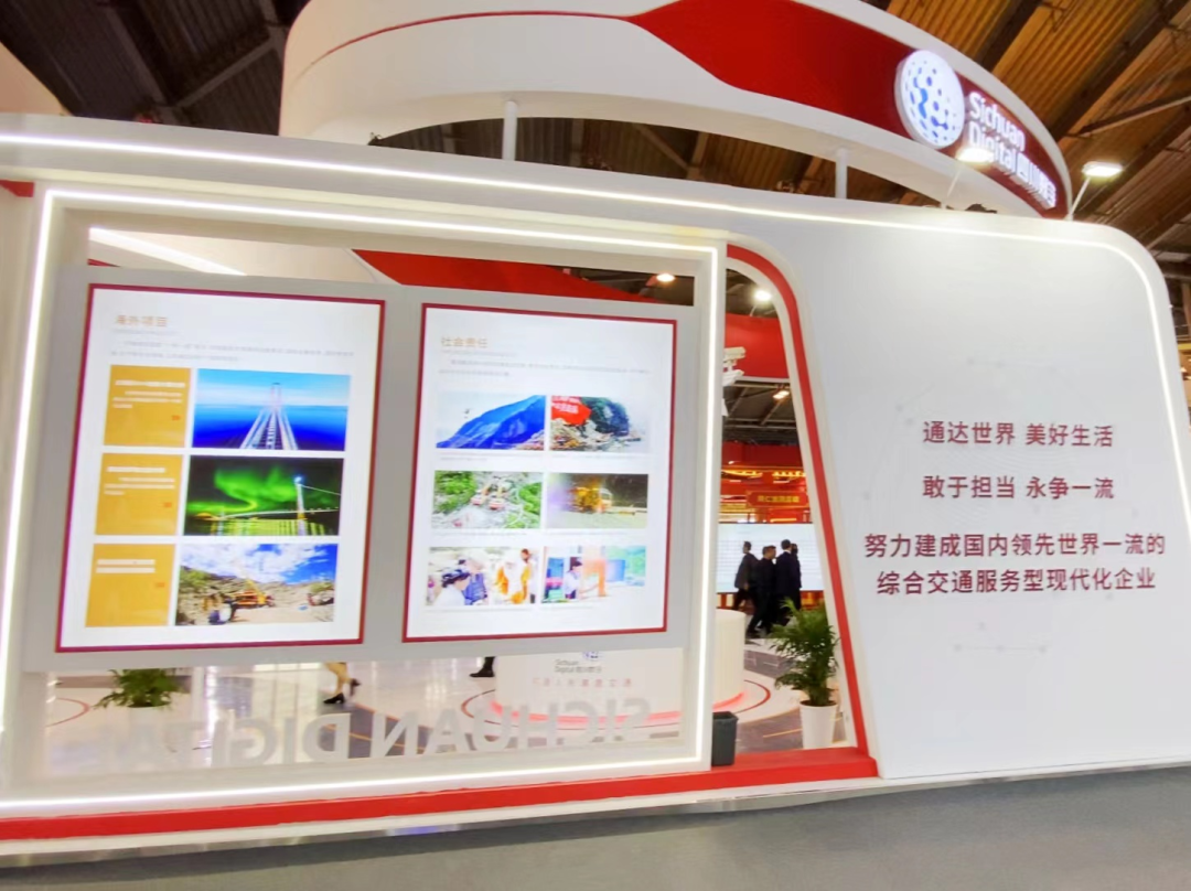 作为四川省属企业首家世界500强,蜀道集团首次代表四川企业在专题展区亮相,设置3大展示板块,即“蜀道集团”“四川数字”和“蜀道驿”,通过科技产品展示、多媒体设备等手段,展示科技创新的新成果、改善公众出行的新服务,传递蜀道品牌新势能。