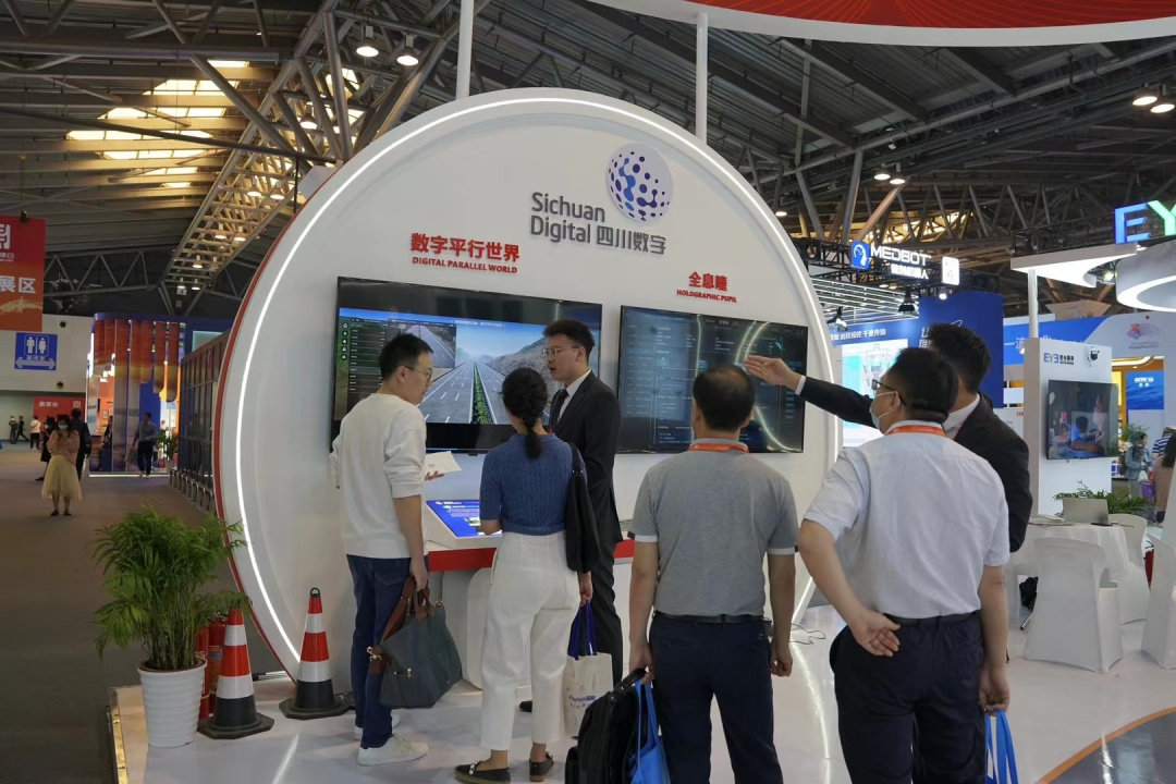 智慧交通,引领未来出行。蜀道集团顺势而为、勇立潮头,全面开展面向车、路、云协同的数字交通产品、标准、服务以及整体解决方案的研发,拥有50余项专利和软著成果,“面向车路协同的智慧高速体系建设”被纳入交通强国试点项目,发布了全国首个智慧高速地方标准,今年又相继推出“蜀道·高德行业版APP”和蜀道·腾讯车路协同小程序——“周车预警高速版”和“蜀道·腾讯地图行业版APP”,获得市场高度肯定和业界广泛关注。“四川数字”作为蜀道集团智慧交通板块的子品牌,始终坚持品牌建设与技术创新双轮驱动,以“智”系列产品树品牌,以多维度极致服务强品质,致力于为人民群众美好出行提供极具价值的数字交通产品和服务。在博览会上进行了软硬件产品展示,软件产品包括数字平行世界平台系统、全息瞳、精准导航APP;硬件产品主要包括双臂智能杆、智感魔方、智联魔方和智脑魔方等,引起了媒体和观众的广泛关注。