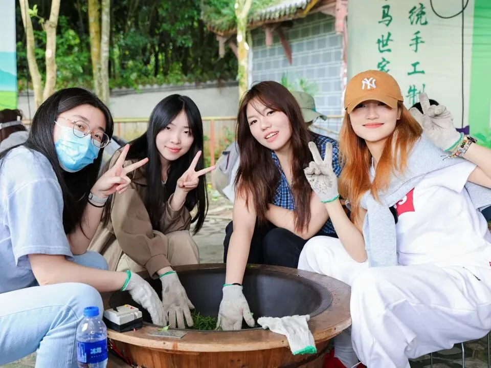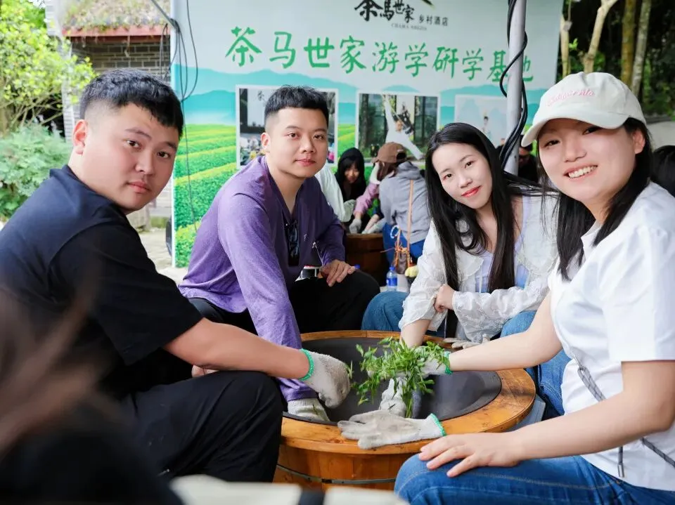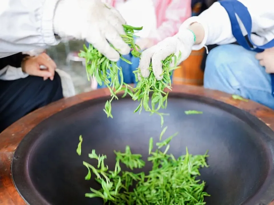 采茶结束,传统制茶体验随即开启。在专业人员指引下,大家深入了解从杀青、揉捻到干燥等制茶环节。从鲜叶到成茶,每一道工序都凝聚着耐心与匠心。通过亲手体验,大家进一步感受到传统茶文化的独特魅力。