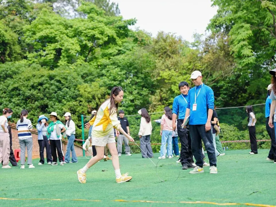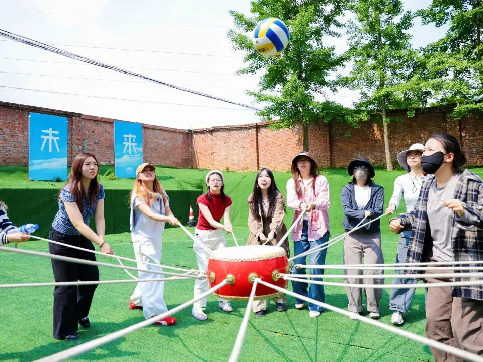 午后,“鼓动人心”、“接力乒乓球”、“一穿到底”等趣味拓展项目有序开展。大家在协作中明确目标,在配合中形成默契,在挑战中感受团队力量。