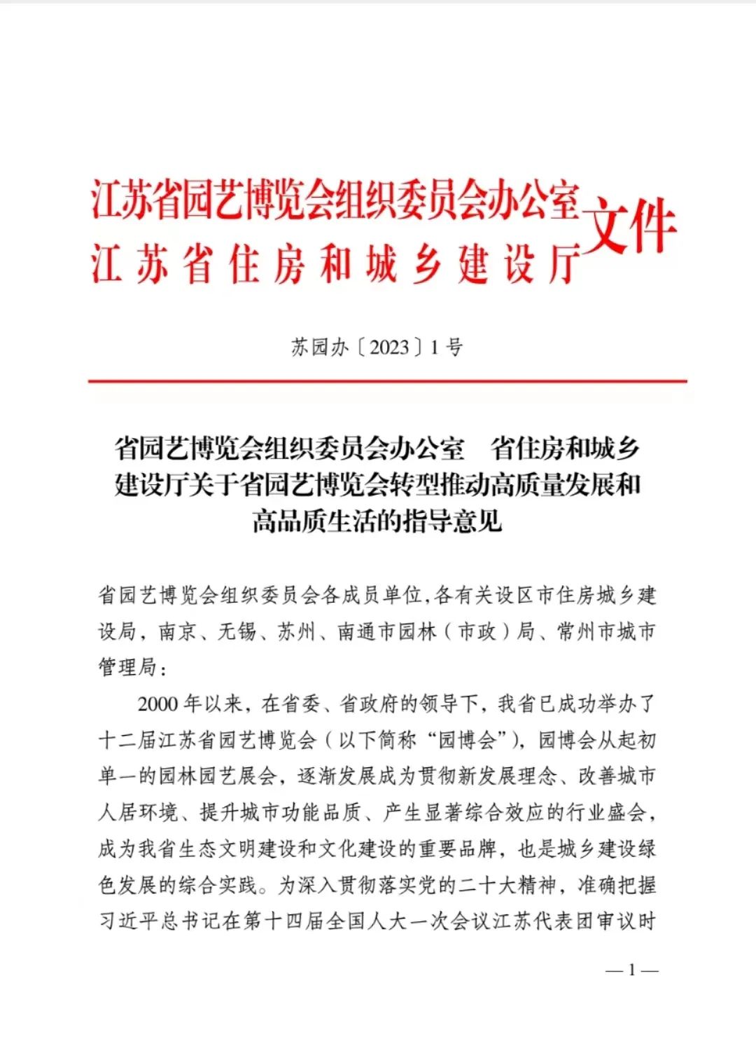 为深入贯彻落实党的二十大精神,准确把握习近平总书记在第十四届全国人大一次会议江苏代表团审议时的重要讲话精神,高质量做好省园博会组织筹办工作,在多轮征求各方意见基础上,5月12日,江苏省园艺博览会组织委员会办公室、江苏省住房和城乡建设厅制定印发了《关于省园艺博览会转型推动高质量发展和高品质生活的指导意见》。