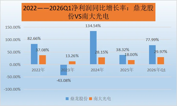 鼎龙股份:净利润增长率波动极为剧烈。2022 - 2023年从82.66%大幅下滑至 - 43.08%,出现净利润负增长;随后在2024年强势反弹至134.54%,之后又有所波动,2026年Q1为77.99%。这种大幅波动反映出公司净利润受多种因素影响较大,经营稳定性面临挑战。