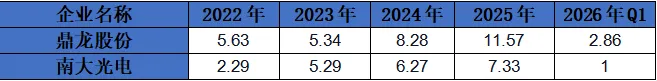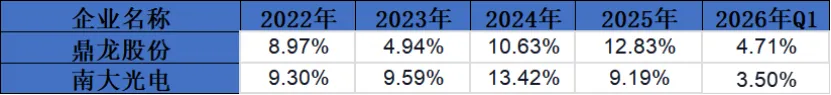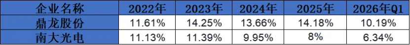 鼎龙股份:在这几年持续保持着对研发的稳定投入,重视技术创新和产品升级,以维持和提升自身在市场中的竞争力。然而,2026年Q1下降至10.19%,可能意味着公司在该季度根据自身发展战略和市场情况,对研发投入进行了阶段性调整。