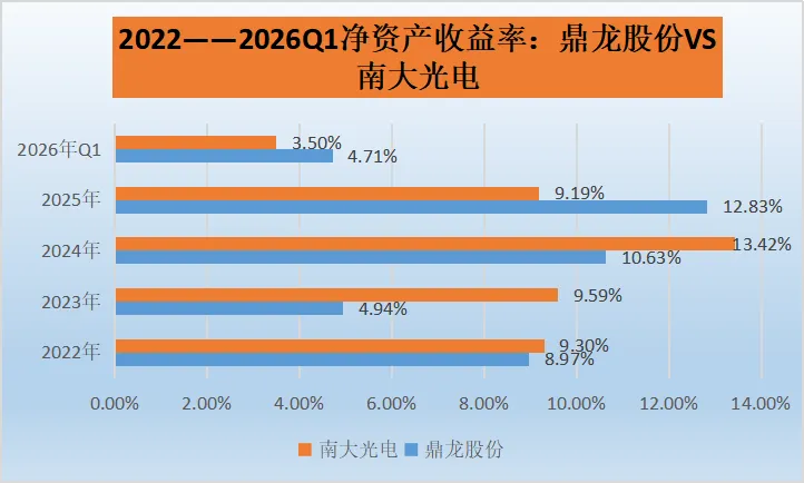 南大光电:整体趋势同样有波动,但相对较为平稳。2022 - 2024年从9.30%上升到13.42%,之后有所回落,2026年Q1为3.50%(需注意Q1数据可能受季节性等因素影响)。说明公司在自有资本利用效率方面具有一定的持续性,但也并非一成不变,同样会受到内外部因素的影响。