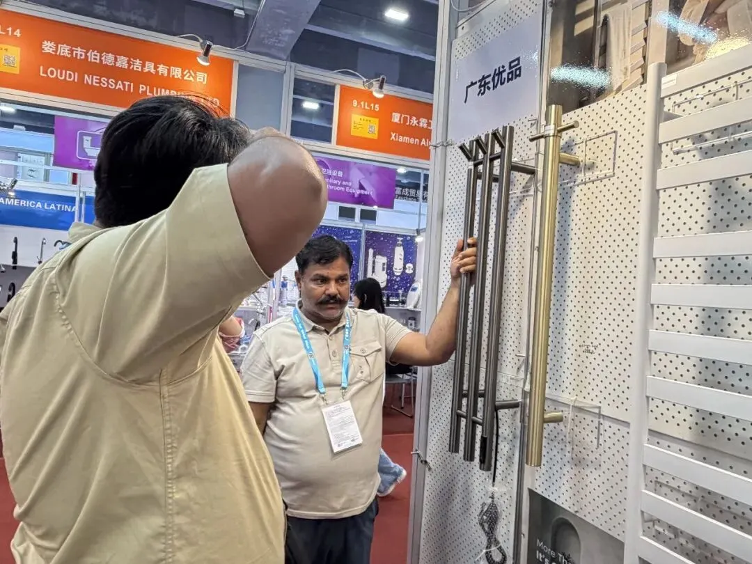 针对东南亚、中东、欧美等不同海外市场,熠赫精准打磨了质量高、设计新颖的工程款及轻智能爆款产品。“我们深耕海外中小批发商、工程采购商和建材连锁客户,主打精准差异化竞争,同等品质价格更优,同等价格品质更好。”令团队振奋的是,开展后每天前来咨询洽谈的客商络绎不绝,现场已现金成交多个意向客户,更有尼日利亚采购商在展位详细了解产品后,展会后直接赴联营工厂考察并快速敲定首批订单。