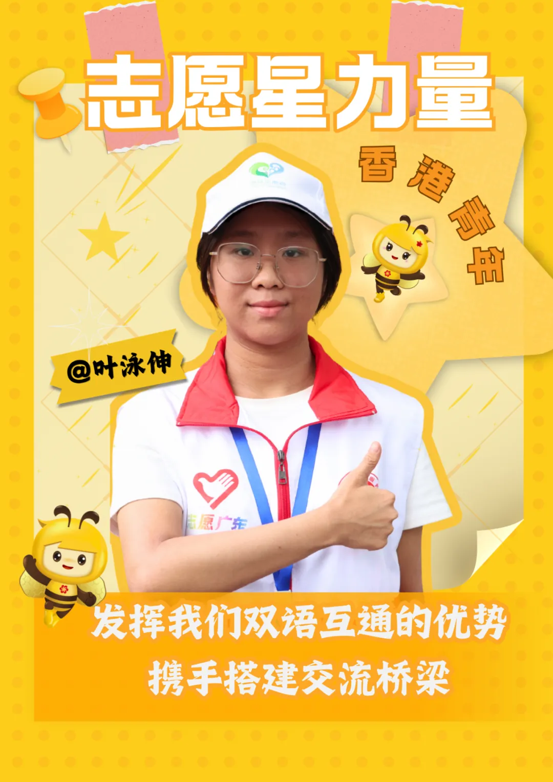 广交会志愿服务让泳伸对港澳青年的使命有了更深理解:广交会是世界看中国的窗口,更是湾区青年展现风采的舞台。在这里,每一位港澳青年都能发挥所长,在奉献中收获成长与友谊,以青春之我融入国家发展,在服务大局中绽放光芒,成为闪闪发光的新时代中国青年。