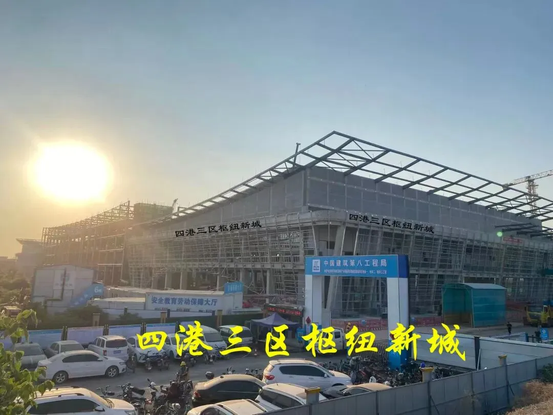 济南国际陆港会展中心的展厅和会议中心正进行主体施工,酒店正进行基础施工: