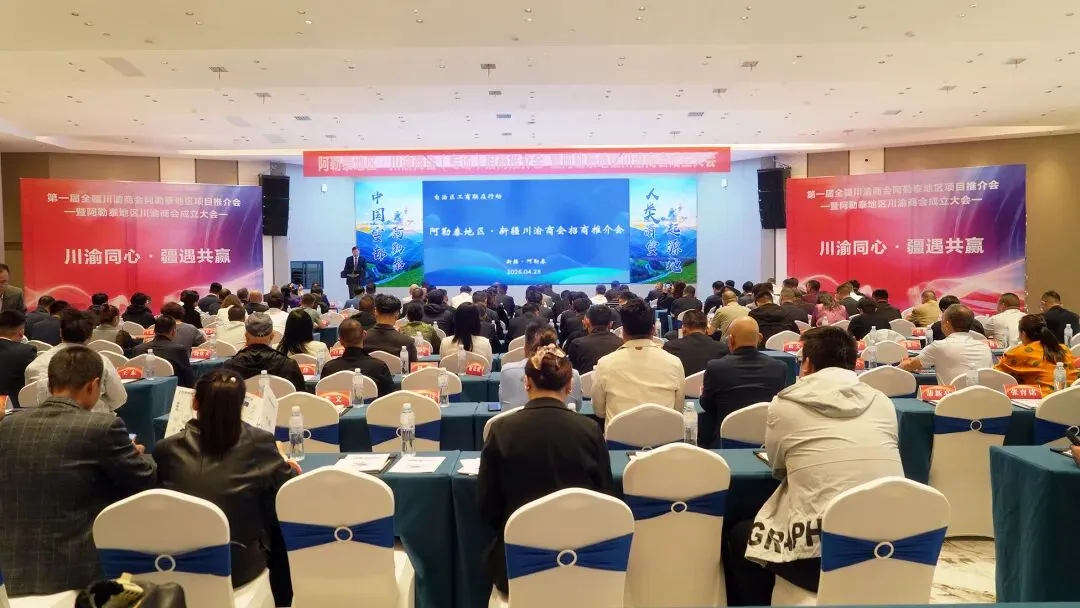 4月28日,阿勒泰地区·新疆川渝商会专场招商推介会成功举办。本次活动由阿勒泰地区工商联联合地区商务局、新疆四川总商会、新疆重庆商会及兵团川渝商会主办,阿勒泰市工商联、阿勒泰地区川渝商会承办。地委委员马天宇出席并致辞,地区政协工委副主任,地区工商联主席(会长)张治军主持会议。来自全疆26家商会及川渝各界企业家代表共计160余人齐聚现场,共探发展机遇、共启共赢新篇。