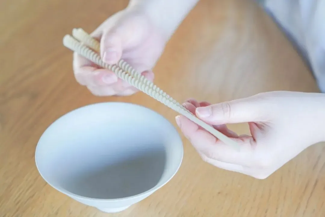 当时他二十多岁,尴尬地发现餐桌上只有他一个人不会用筷子。这促使他设计了一种筷尖带有纹理的筷子,方便不熟练的使用者夹取滑溜的食物。