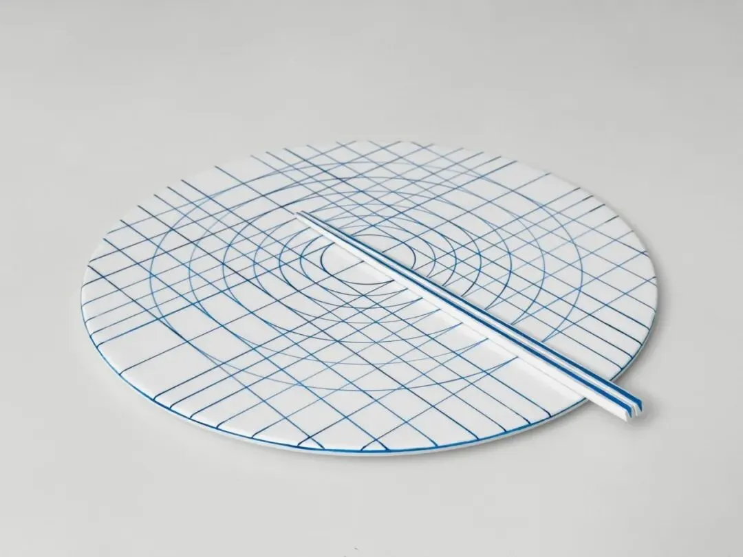 他设计的漆筷镶嵌有青金石,形成一条细细的条纹。筷子放在饰有线条和圆圈网格的盘子上,因此一旦筷子摆放错位,就非常显眼。
