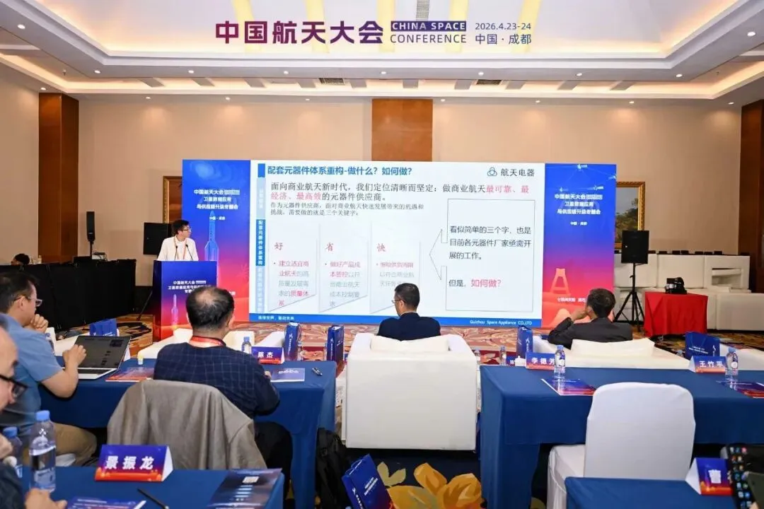 除展台精彩呈现外,公司还深度参与本届航天日的学术交流活动。在卫星数据应用与供应链升级专题分论坛上,公司技术经理吕玮向与会嘉宾分享了公司在供应链产品降本升级中的最新实践与探索成果。围绕宇航连接器、继电器、光电器件、电机等核心产品,航天电器提出并践行 “好、快、省”三维目标——即以航天级高可靠品质为根基(好),以快速响应机制满足商业航天敏捷迭代需求(快),以低成本设计助力行业降本增效(省),全面展示了低成本、高可靠、快响应的宇航元器件解决方案。吕玮的分享内容详实、案例丰富,受到与会专家的高度关注与积极评价,充分彰显了航天电器在商业航天供应链体系中的技术引领力与责任担当。