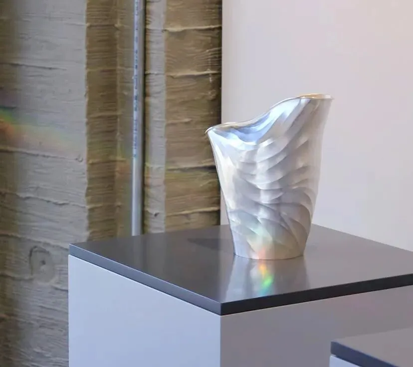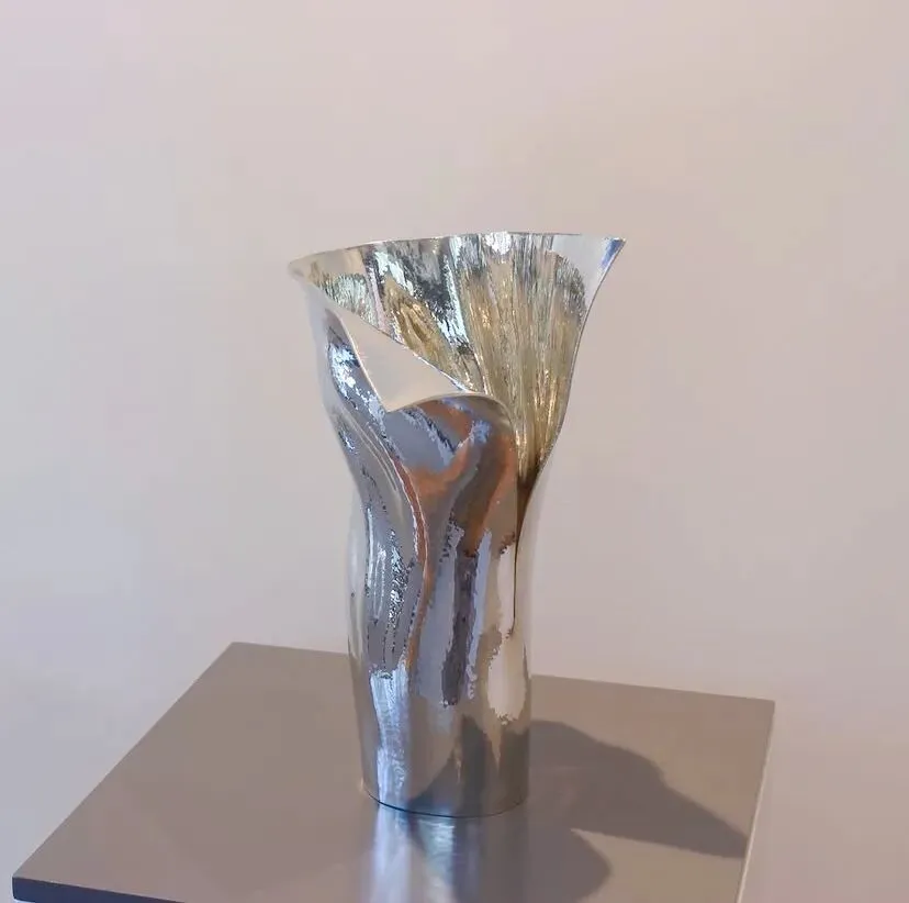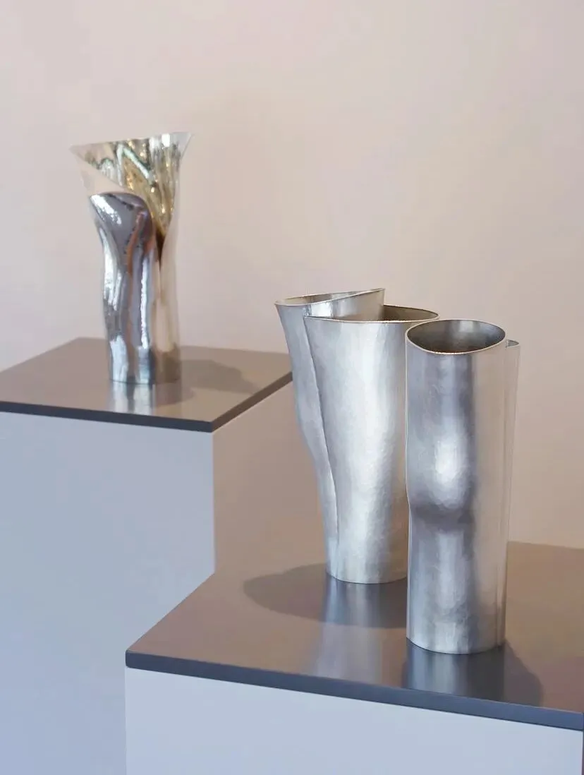 艺术家Donghyun Kim的创作在展现金属柔韧性的同时,亦揭示其内在的结构张力。他通过有机曲线与富有节奏感的形态构建出流动的造型语言,其作品游走于功能与物件之间,在最大化发挥材料物理属性的同时,也完整保留了手工操作与呼吸节奏所留下的痕迹。由此呈现出的,是坚硬之中所潜藏的柔软与生命活力。