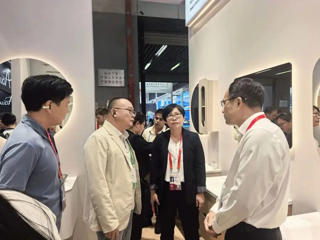 调研过程中,陈小曼表示,水暖卫浴是开平的支柱产业之一,政府将持续出台配套支持政策,助力企业稳订单、拓市场,同时聚焦产业补链强链需求,精准对接上下游优质资源。本次广交会期间,陈小曼带队与埃飞灵、蒙娜丽莎等行业头部企业开展招商对接,围绕技术升级、产能配套、品牌共建等方向洽谈合作,力求进一步完善开平水暖卫浴产业生态,提升产业集群的整体竞争力。
