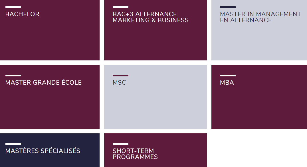 同时INSEEC利用其强大的校友网络,以及与葡萄酒行业主要参与者的紧密联系,围绕专业,国际和技术三个轴,为学生提供BAC + 3至BAC + 5的葡萄酒相关的管理和营销专业课程
