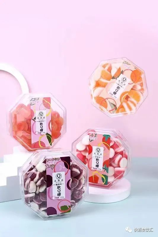 爆浆陈皮糖软:糖果水果酱夹心独立包装,果酱夹心,Q弹陈皮,软糯口感,好吃嚼出来北海道软糖:高颜值多种不同口味软糖,丰富果味,白桃、草莓、桔子、葡萄四种口味可以选择,多种不同滋味的的享受,满满的清新口味,口感柔软似果肉,果香自然,酸甜适中,享受其中的美味,甜蜜Q弹。