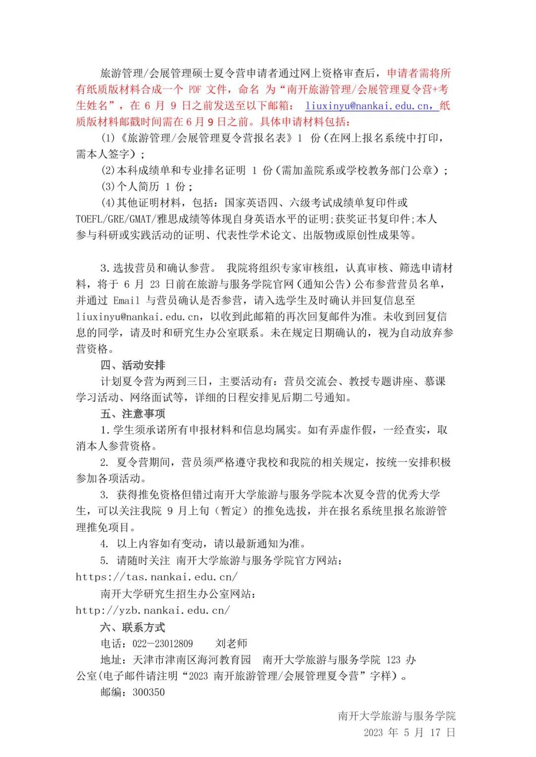 推免夏令营|2023年南开大学旅游管理/会展管理夏令营启动(一号通知)