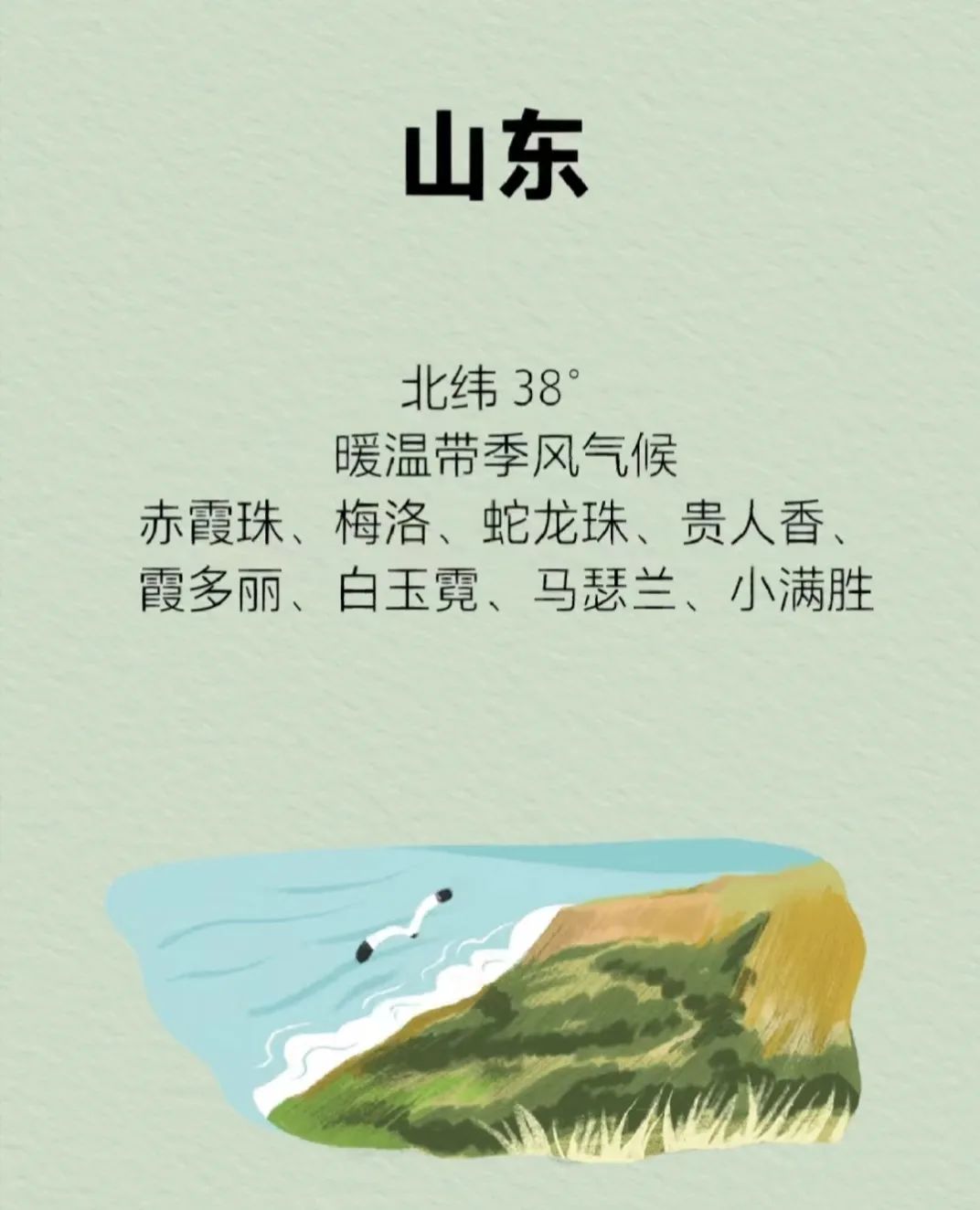 山东葡萄酒种植历史悠久,海洋性气候使得葡萄藤不需要特殊的保护措施过冬,有排水性能良好的朝南的斜坡,很适合欧洲属葡萄的生长。