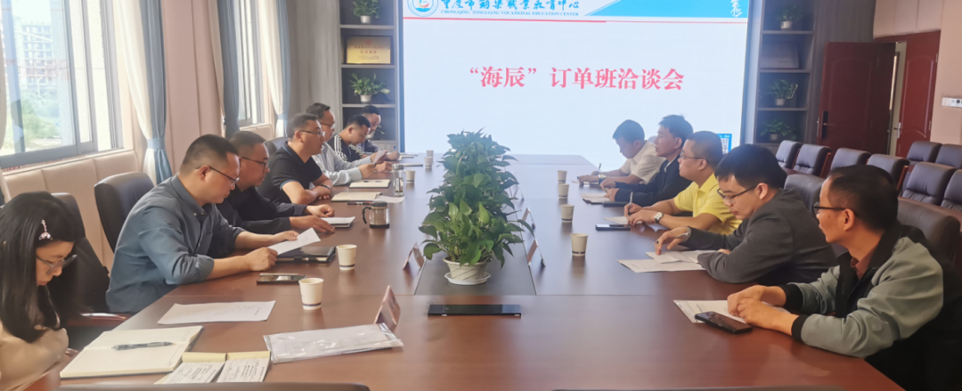 会上,周泉丞校长介绍了海辰订单班的基本情况,谈到“今年我校跟“海辰”商谈后,拟确定招生一个订单班50人进行培养”,重庆能源职业学院许行副校长介绍了学校储能专业的基本情况,双方就海辰订单班“3+2”合作事宜达成共识,开展了关于中职与高职阶段的课程讨论,确定了人才培养方案、专业能力贯通、课程体系建设、专业基础、核心课程等相关内容。