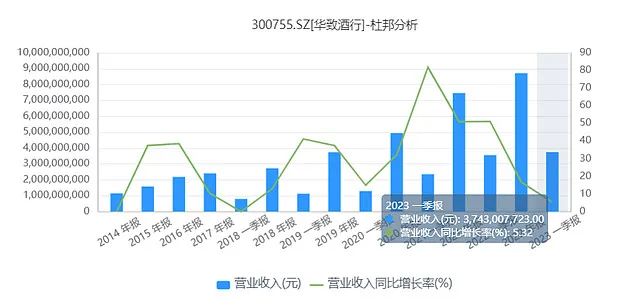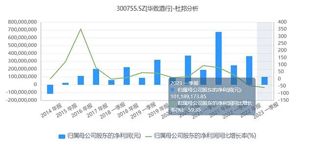 华致酒行算是经销商中的龙头,它在2022年的利润增速是-45.77%,而一季度更是下滑到-59.35%。