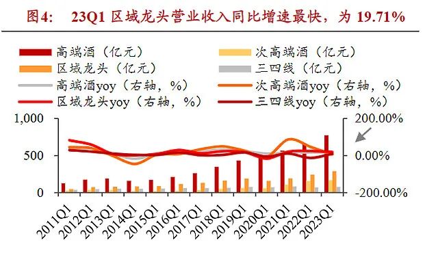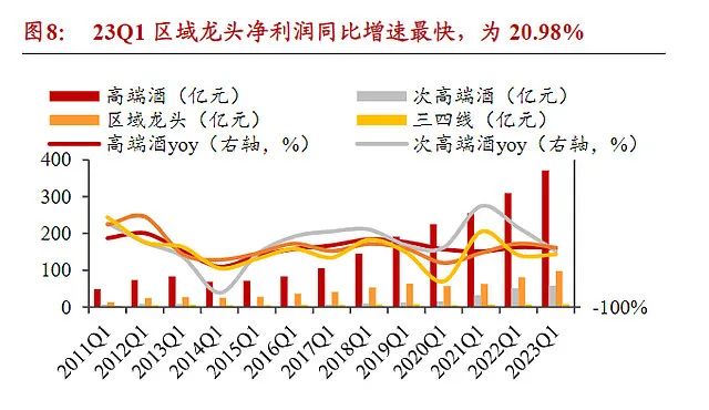 利润增速:区域龙头(+20.98%)>高端酒(+19.73%)>次高端酒(+14.13%)>三四线酒(+7.58%)