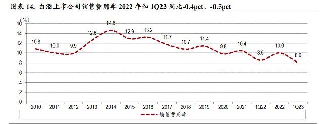 不过今年一季度的销售费用率同比降低0.5个百分点。近十年的趋势也是不断降低。