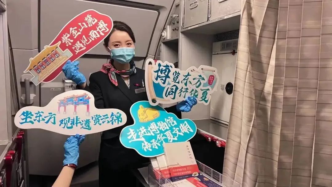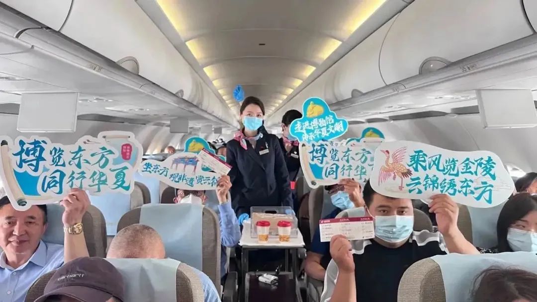 “女生们、先生们,今天是5月18日国际博物馆日。中国博物馆遍及大江南北,在博物馆里,我们触摸历史,坚定自信,洞见未来!今天,中国东航联合了南京博物院,将在万米高空的客舱为您带来一场奇妙的空中博物馆之旅,让您一朝看遍六朝古都历史!”在客舱门关闭后,机上这段特殊机上广播引起了旅客的好奇。