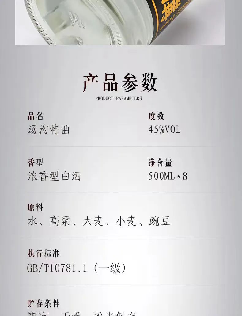 汤沟酒 特曲 黑汤沟 浓香型白酒 45度 500ml*8瓶 整箱装