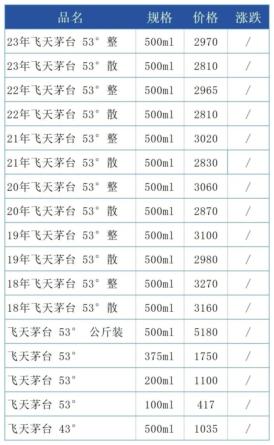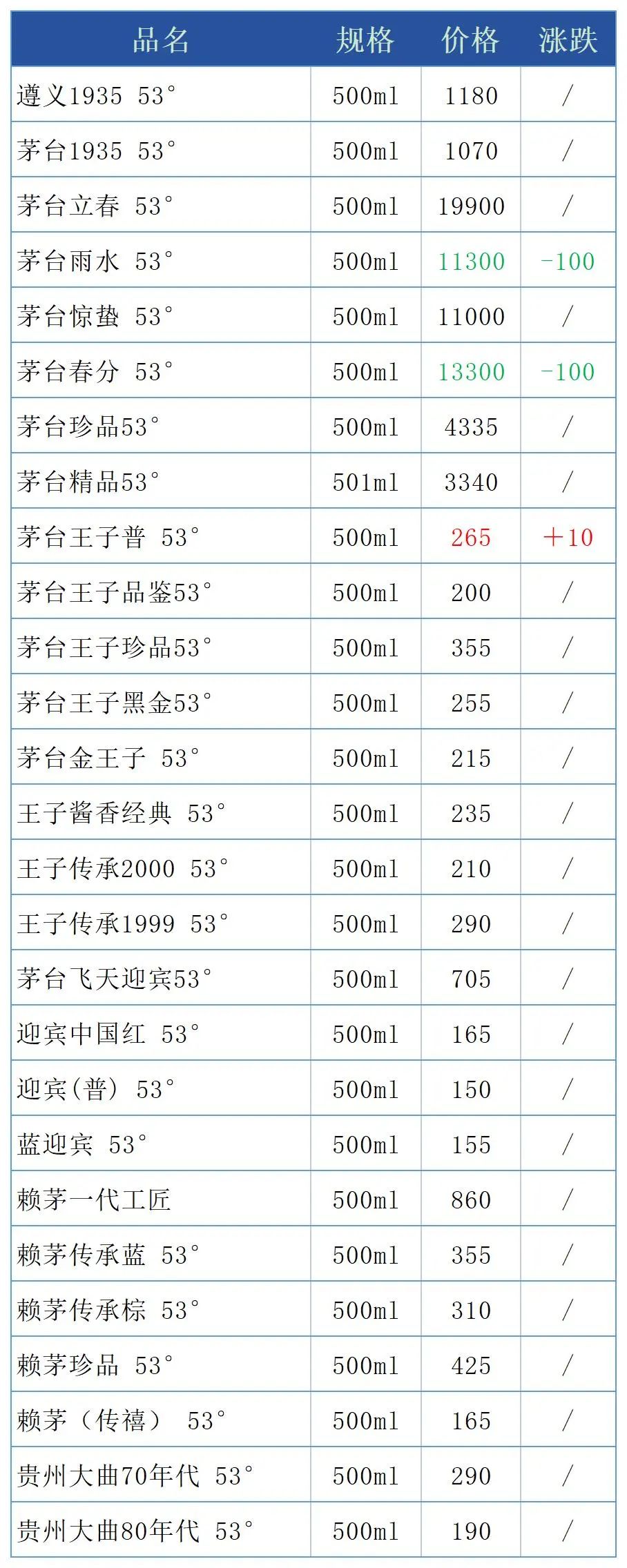 茅台节气酒下跌,每日名酒报价2023年5月18日