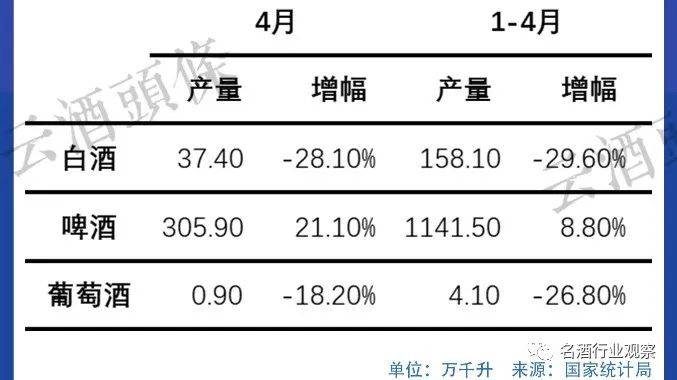 5月17日,国家统计局发布2023年1-4月规上企业酒类产量统计数据(如上表所示)。(来源/云酒头条)