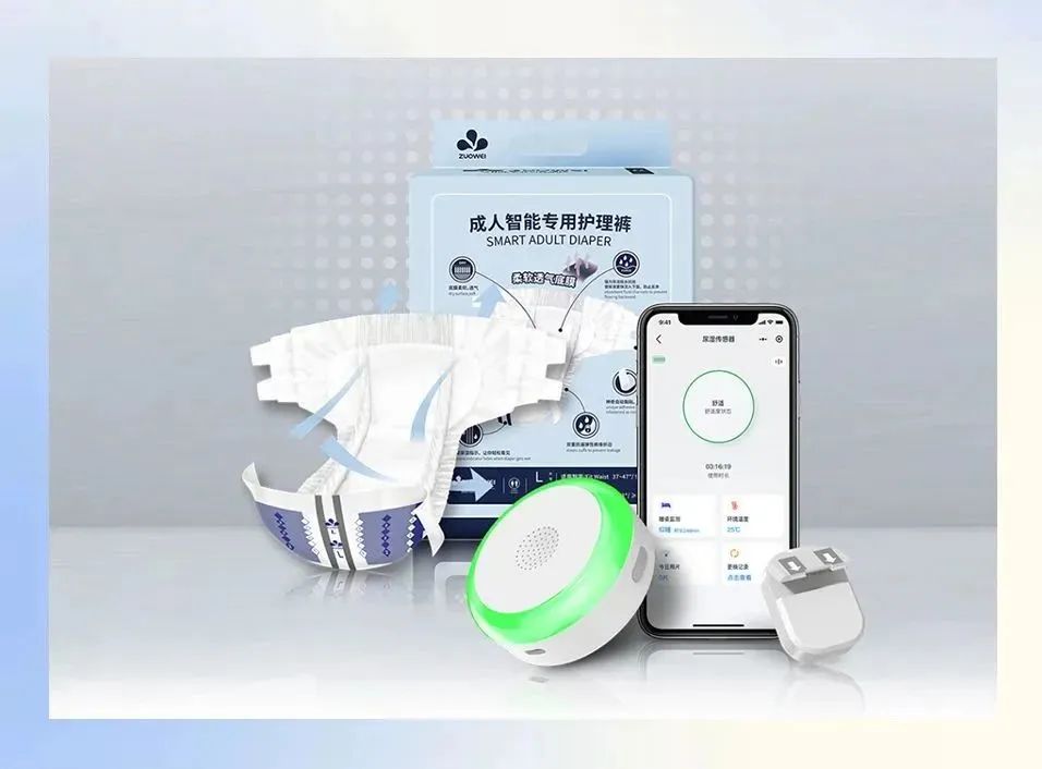 为长期卧床或大小便无法自理的人群设计,只需将尿湿传感器夹在纸尿裤的碳带上,报警网关灯将从尿湿传感器接收到的数据通过Wi-Fi发送到手机APP,即使子女不在老人身边,也可在手机app上实时查询老人的尿量、睡姿、翻身情况和周围温度的变化等情况。