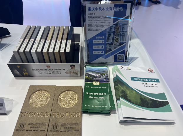 展会上,中欧木业经理刘虎及工作人员热情为到场来宾讲解、展示泰国Tropico俏牌人造板、“良木泽”厨房系列木制品商品及重庆国际木材及木制品交易中心项目内容。