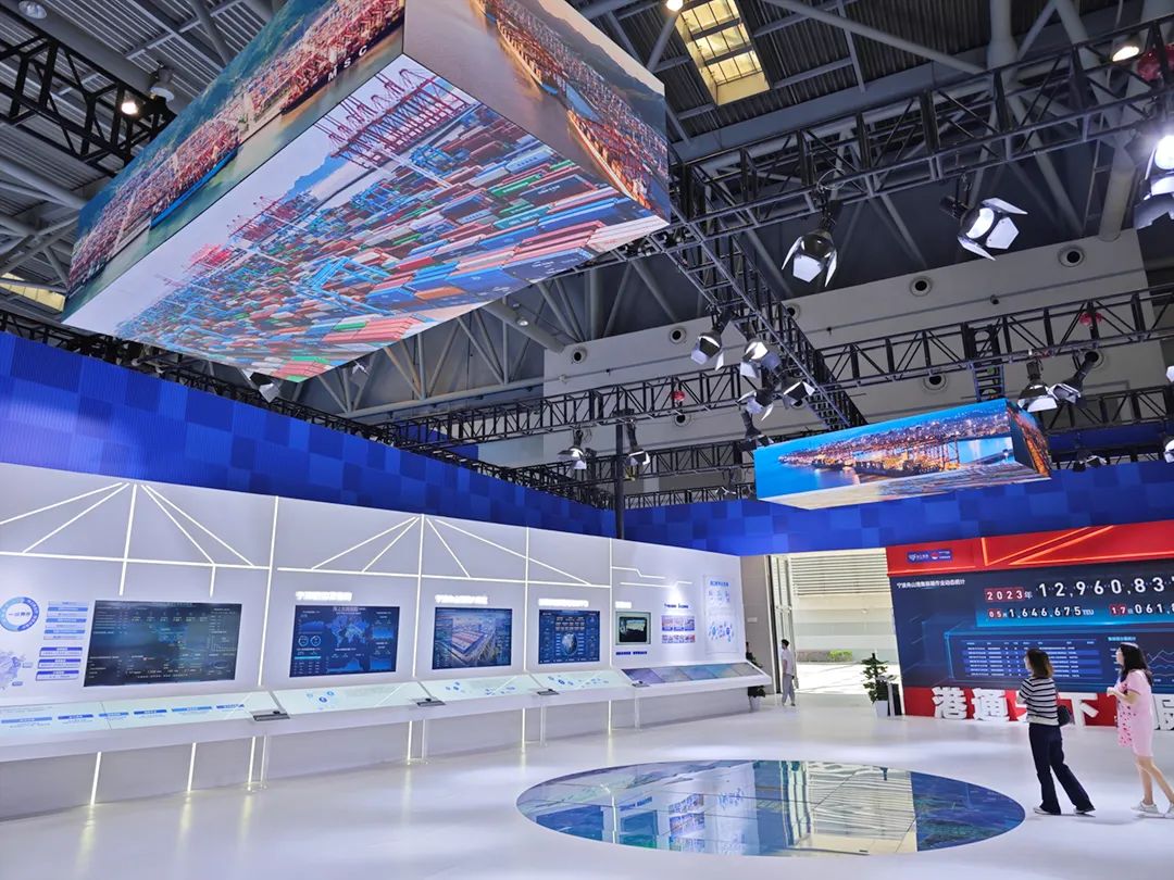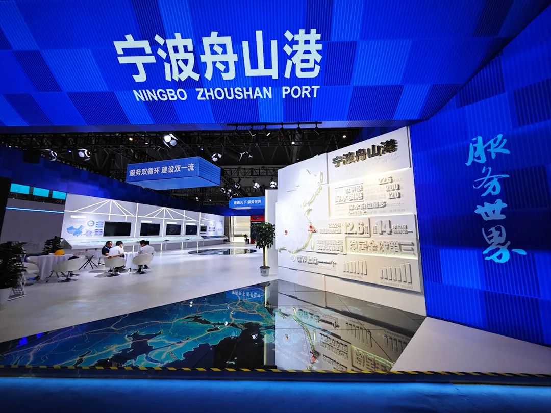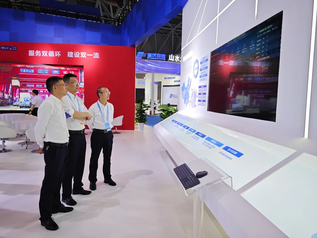 集团在本届西洽会上设置了超460平方米的大型展台,展示宁波舟山港的区位优势和通达全球、联通内陆的港口集疏运网络,以及近年来围绕港口数字化改革形成的“四港联动智慧物流云平台”“港口数字孪生体”等一系列数字港航物流建设成果。