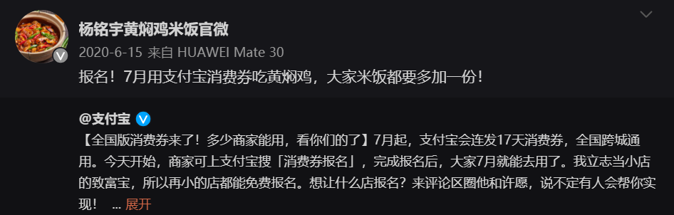 ▲图源:杨铭宇黄焖鸡米饭官微的更新停在2020年