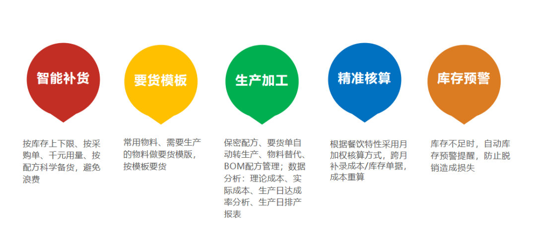 而围绕餐饮商家多品种、少批量、高频次的采购特点,科脉云餐谋在供应链和加工管理层面也做到了精细化。其余玩法如下所示: